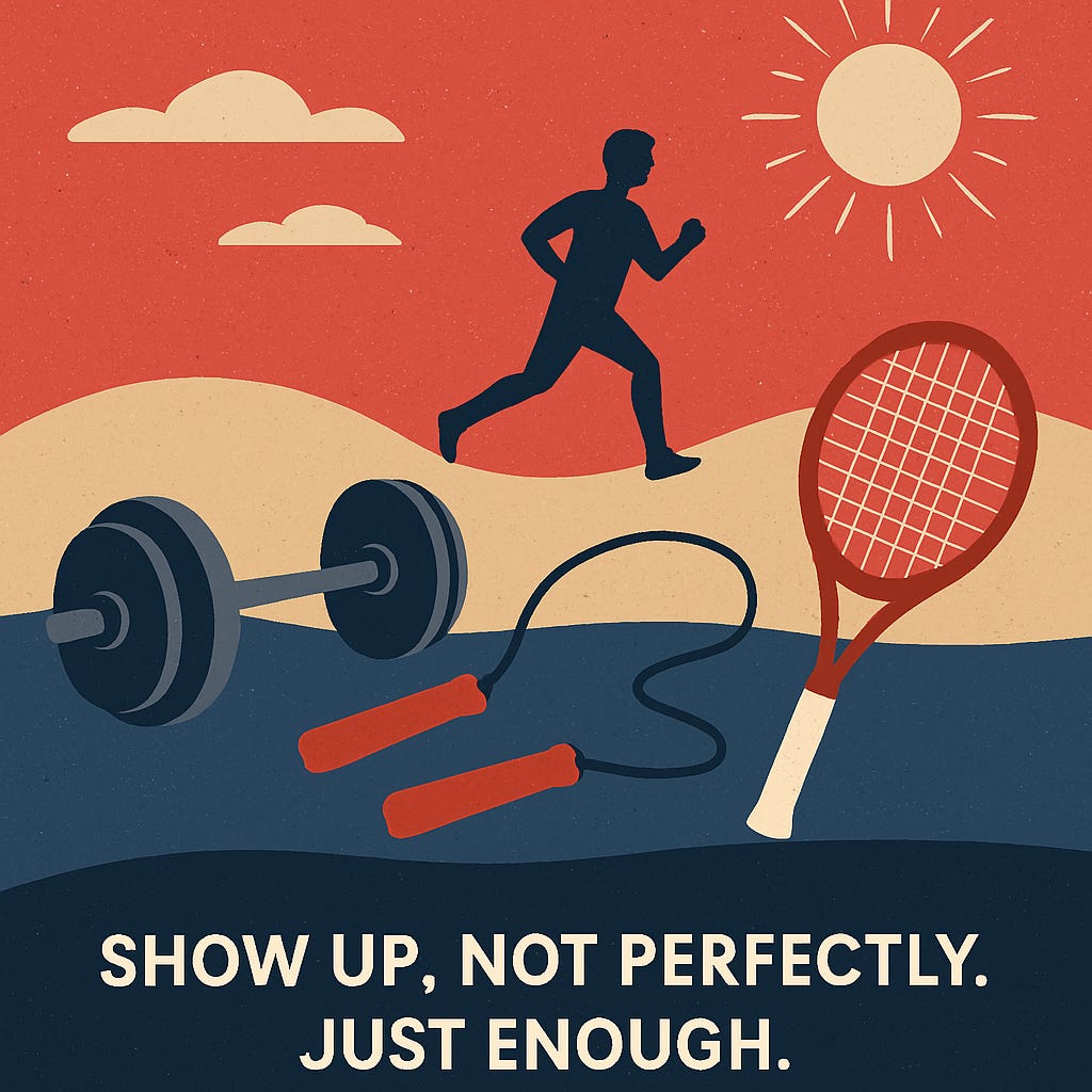 But I do believe in showing up. Not perfectly. Just enough. Maybe even barely enough. But still — showing up. Fitness, for me, has never been about becoming superhuman. It’s been about trying. Failing. Sweating. Then trying again the next day — or at least trying to try.